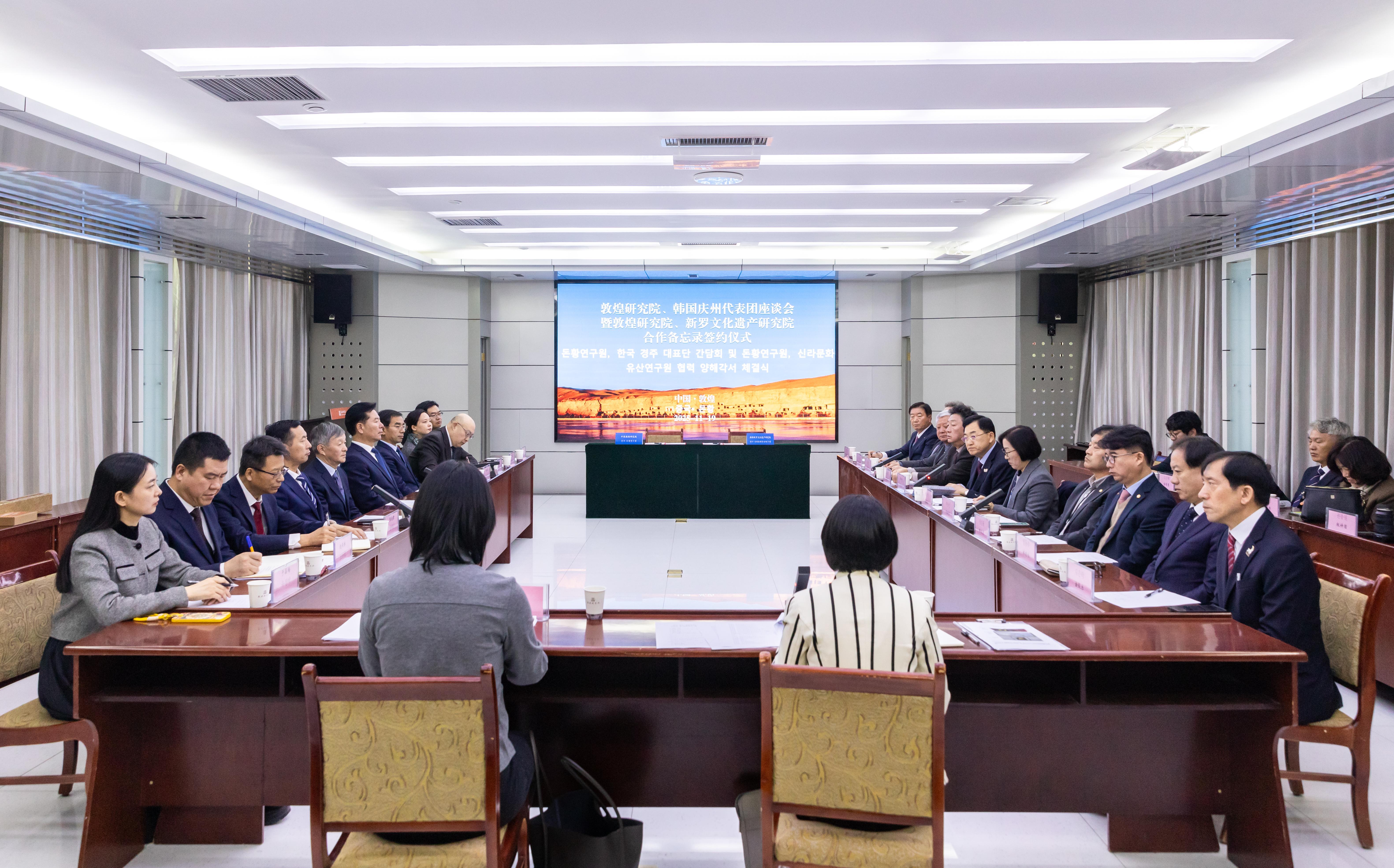 11月18日,敦煌研究院与韩国庆州代表团座谈会暨敦煌研究院与韩国新罗文化遗产研究院合作备忘录签约仪式在敦煌研究院举行。