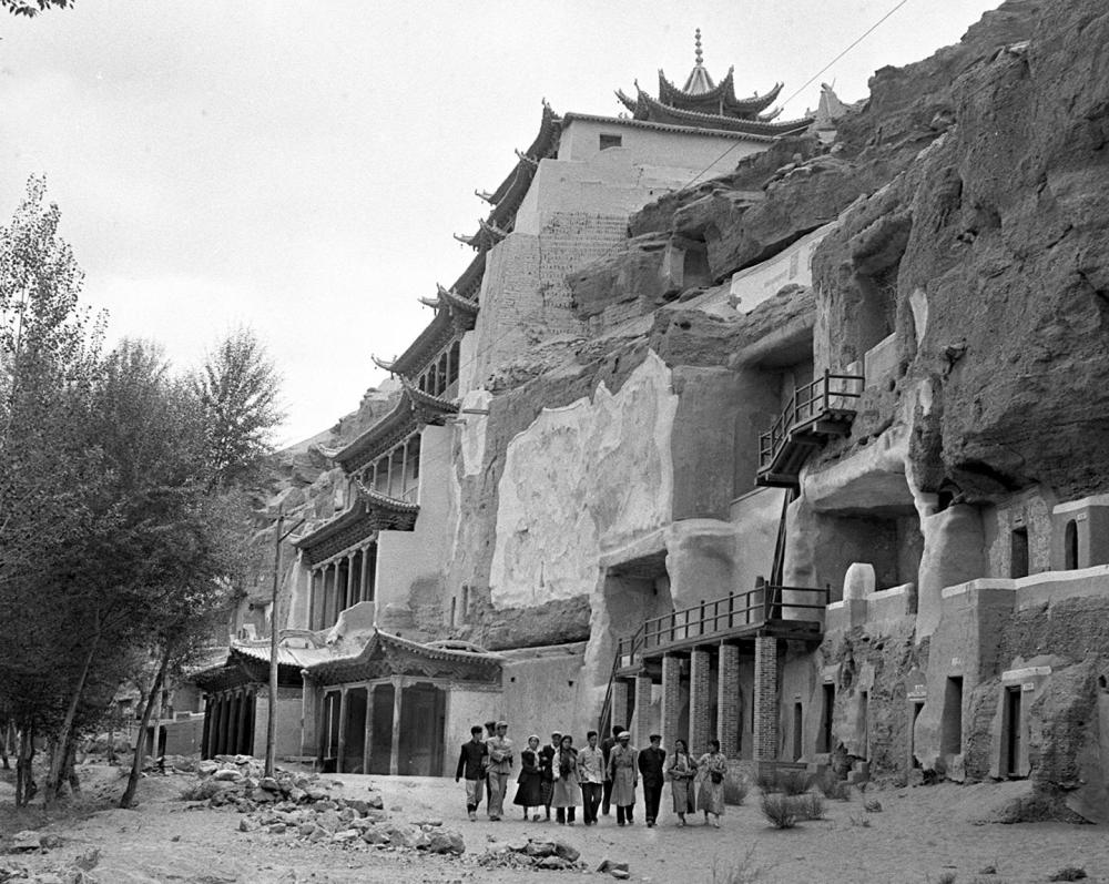 1956年拍摄的敦煌莫高窟外景一角。新华社记者 刘庆瑞 摄