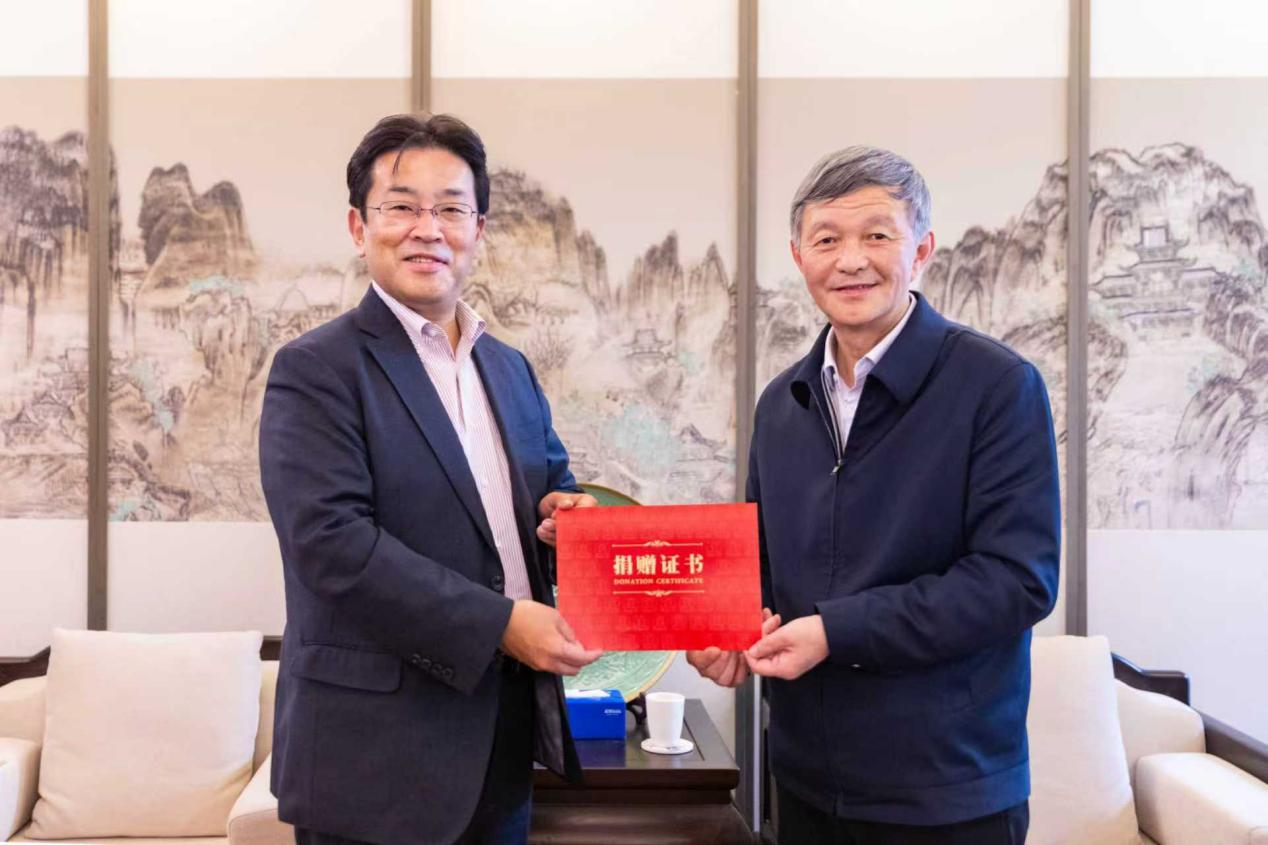 会上,日本经济新闻社还向敦煌研究院捐赠资金用于敦煌文化保护研究弘扬工作,苏伯民代表敦煌研究院接受捐赠并颁发捐赠证书。