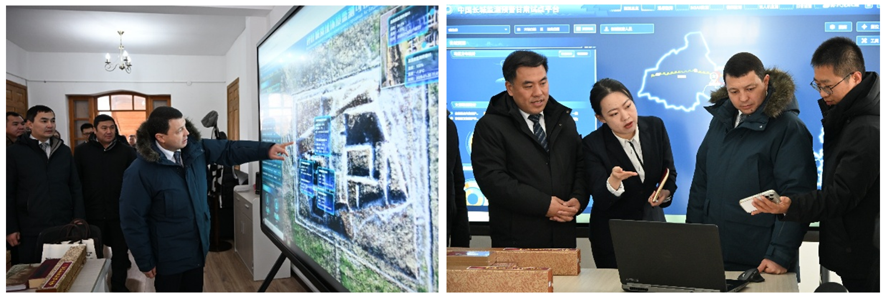 吉尔吉斯共和国文化、信息和青年政策部部长米尔别克•马姆别塔利耶夫、第一副部长索尤斯别克•纳德尔别科夫等一行察看联合实验室监测平台